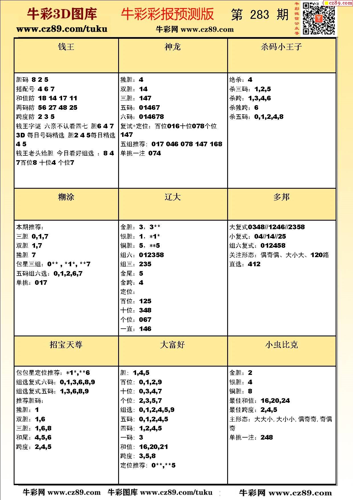 牛彩版3D预测彩报图25年283期打印版