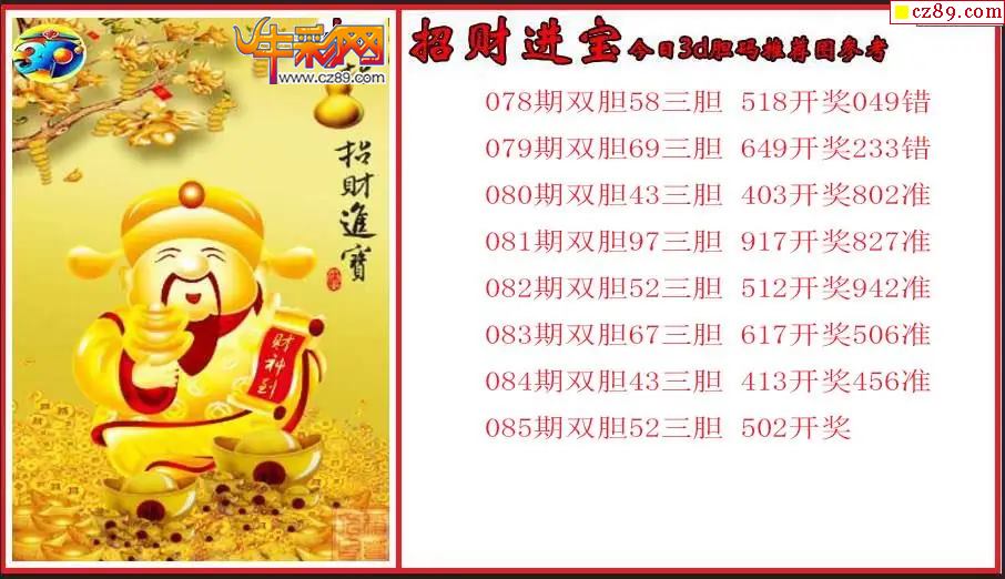 26年085期3d 招财进宝今日胆码推荐图参考
