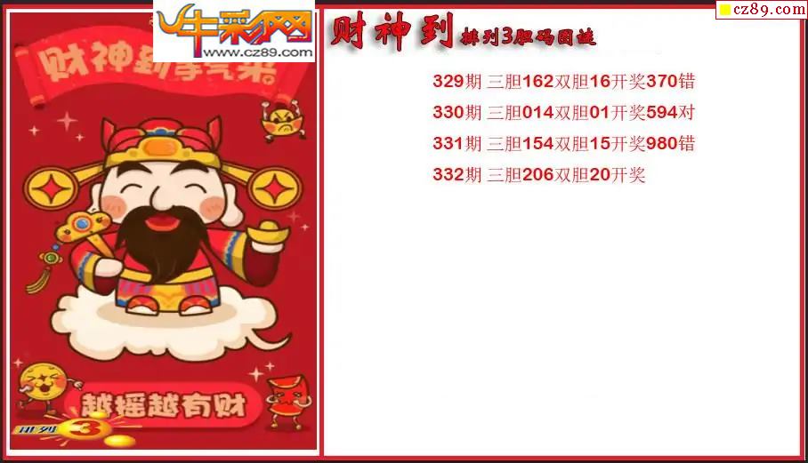 > 2025332期P3财神到胆码图谜