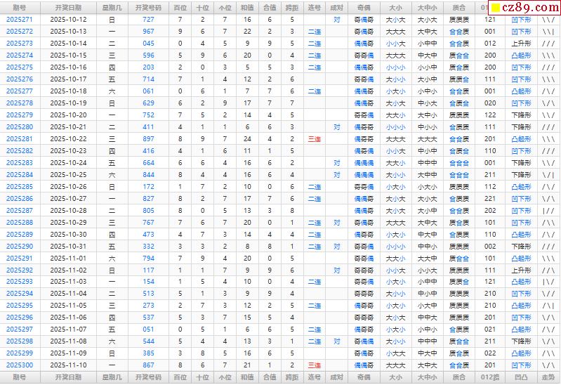 > 25年301期福彩3D综合统计表
